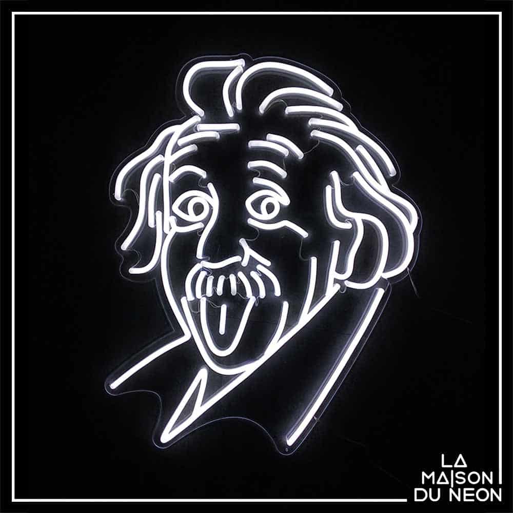 Le néon ”Albert Eisntein” fait partie de la collection de néons LED Iconic qui rend hommage à toutes les personnalités qui ont marqué l’histoire, l’art, la musique ou le cinéma.