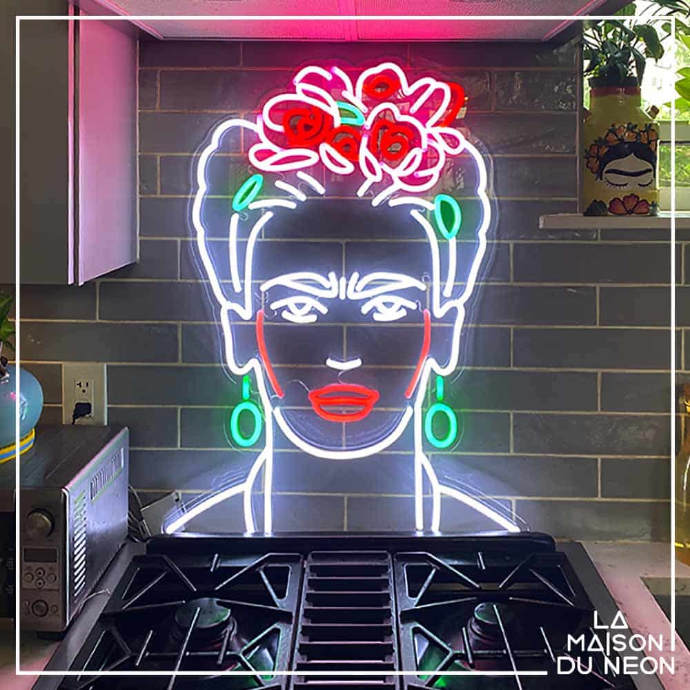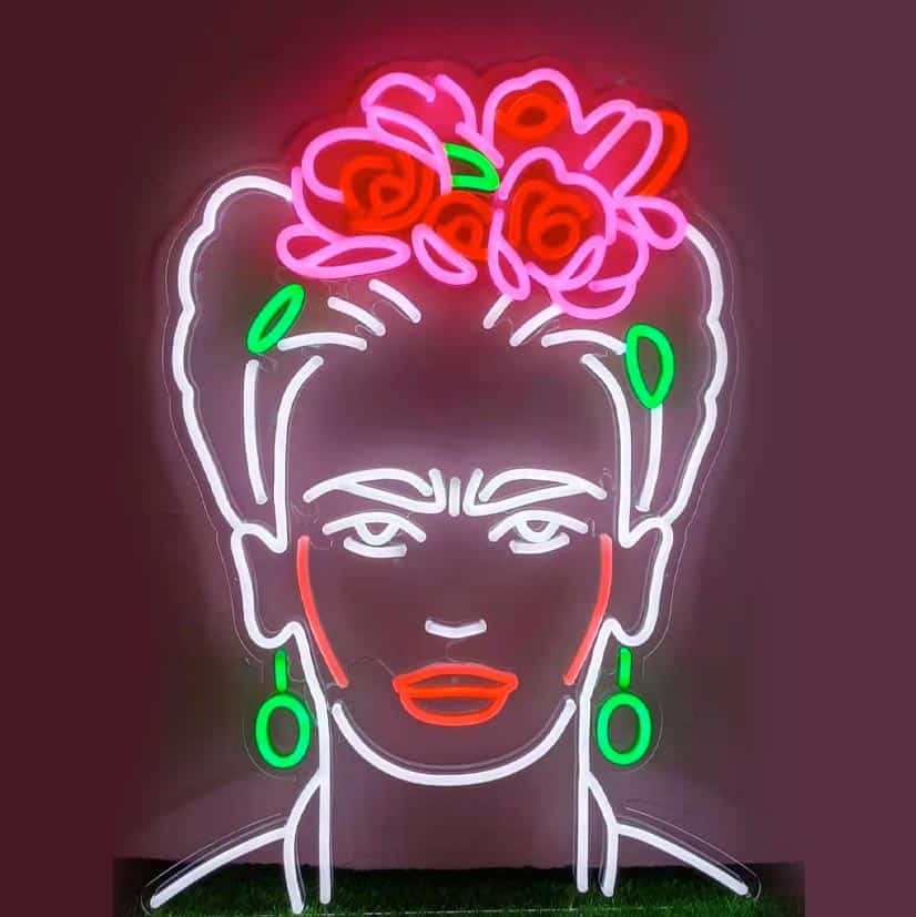 Le néon ”Frida Kahlo” fait partie de la collection de néons LED Iconic qui rend hommage à toutes les personnalités qui ont marqué l’histoire, l’art, la musique ou le cinéma.