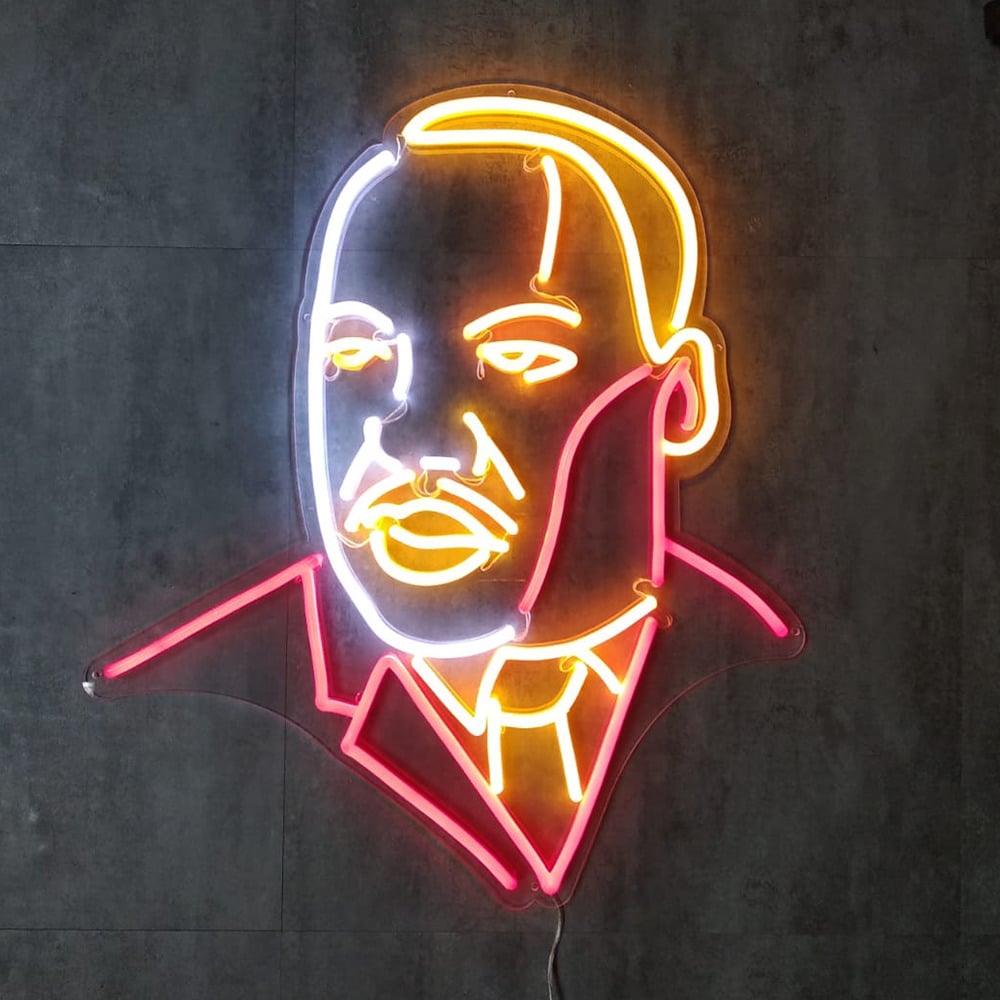 Le néon ”Martin Luther King” fait partie de la collection de néons LED Iconic qui rend hommage à toutes les personnalités qui ont marqué l’histoire, l’art, la musique ou le cinéma.