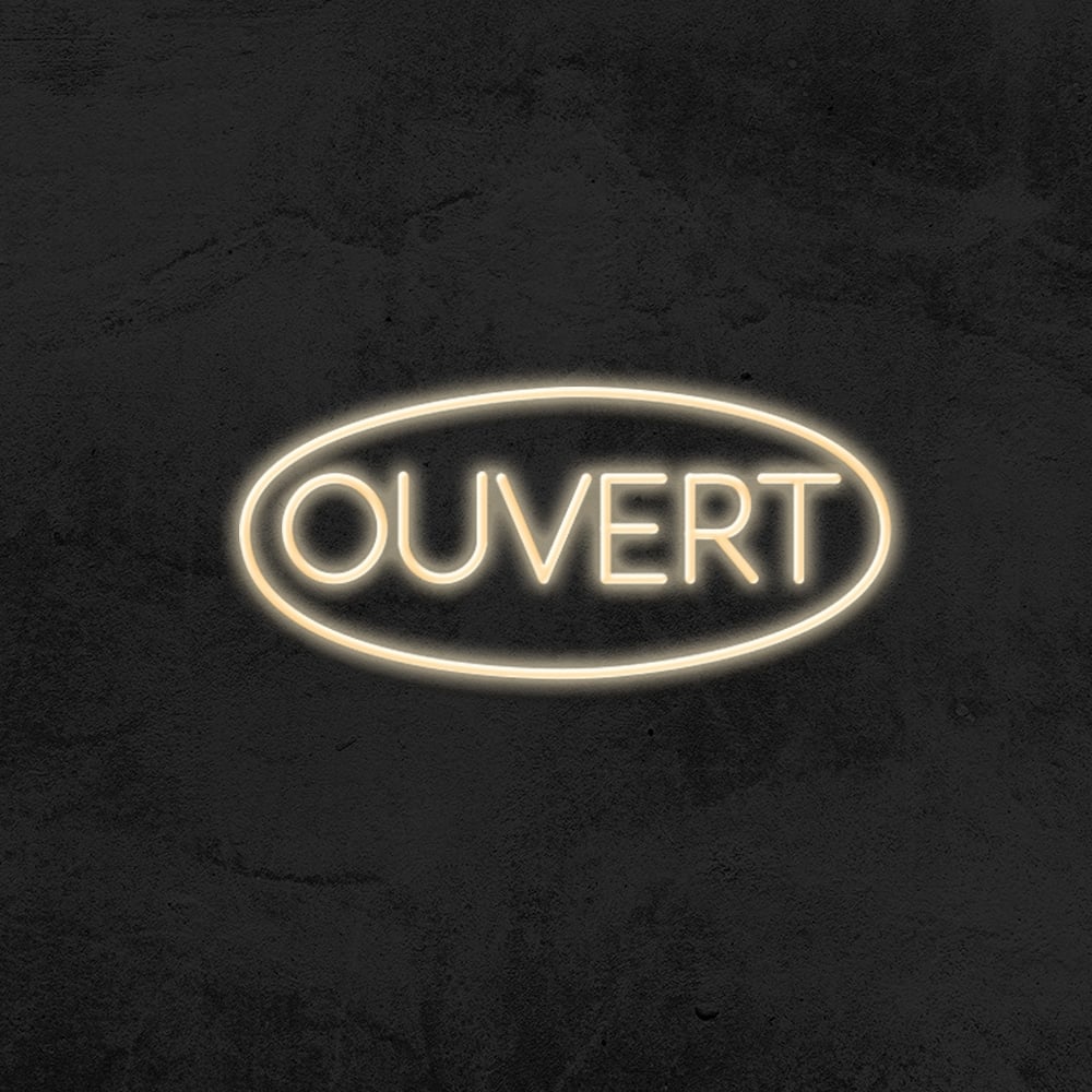 Le néon ”Ouvert” fait partie de notre collection de néons dédiées aux restaurants. Parfait pour augmenter la visibilité de votre commerce et attirer les clients.
